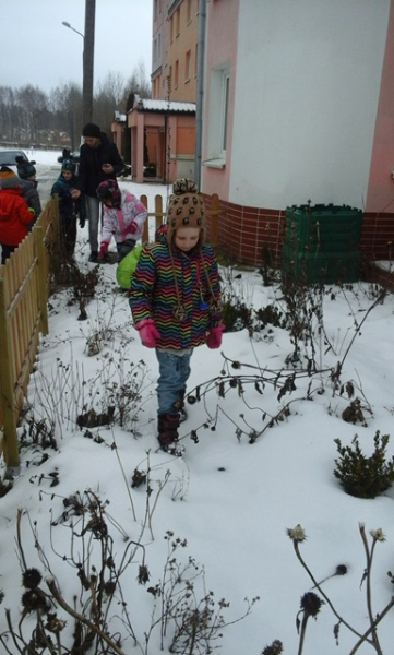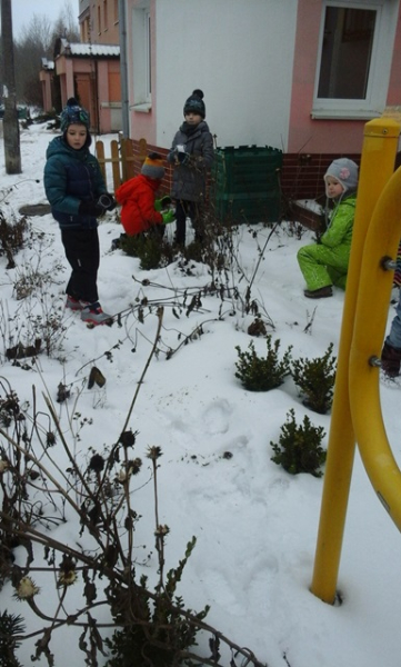 Przeprowadzono ankietę wśród dzieci biorących udział w projekcie. Grupa odwiedziła ogród uśpiony pod zimową kołderką. W planach jest obserwacja dwóch habitatów ( adresów ekologicznych) przyszkolnego ogródka i miejsca nieopodal szkoły – przy stawie.