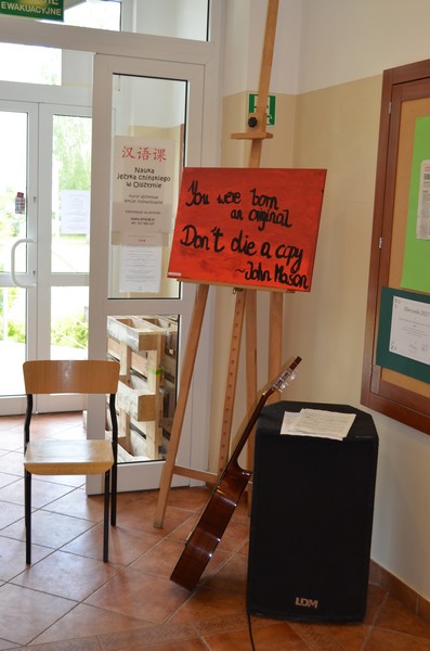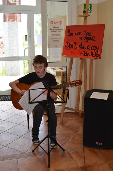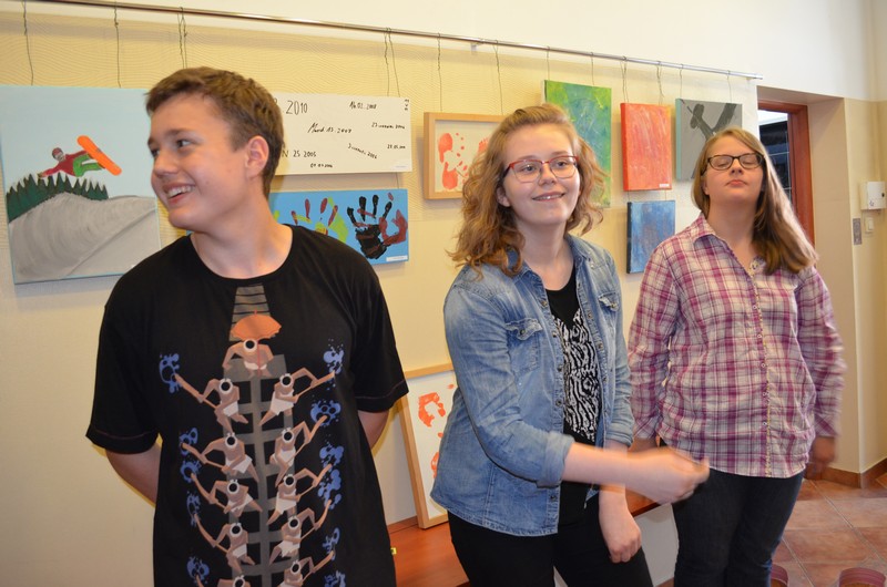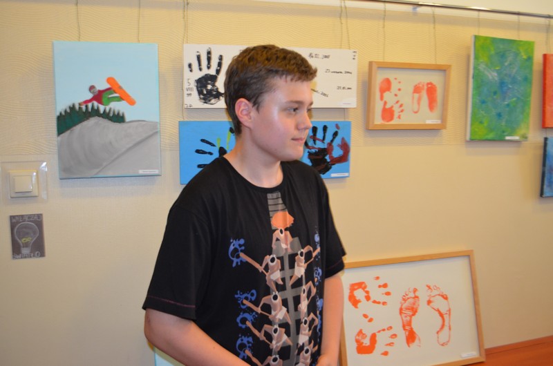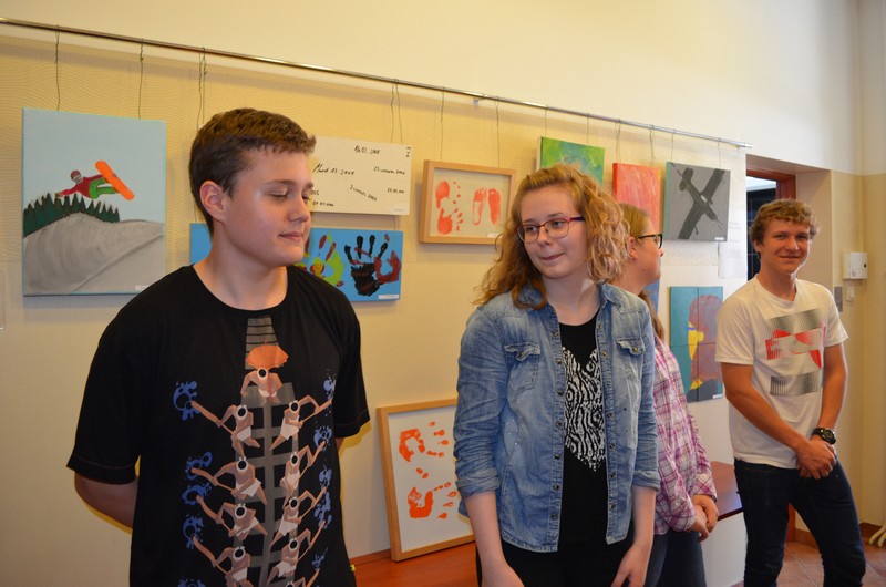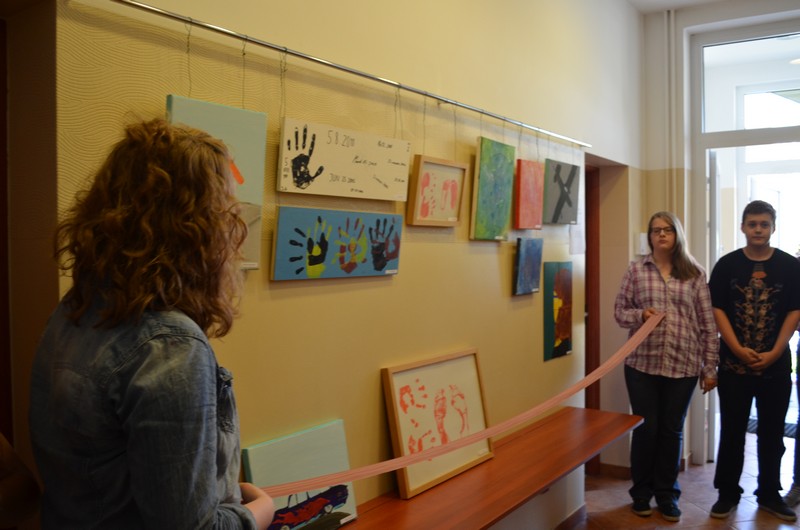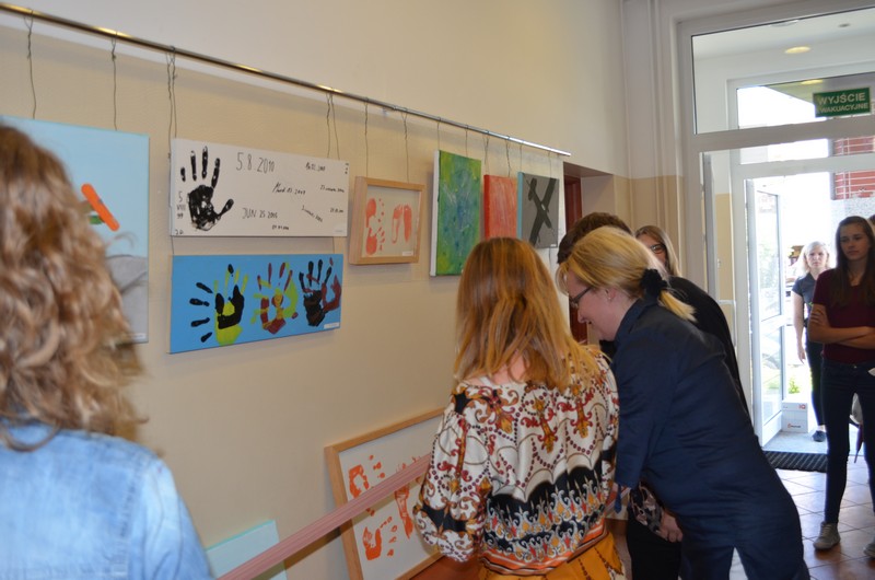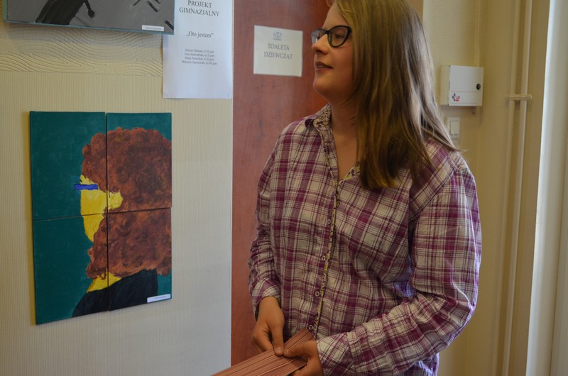 Projekt zakończony został uroczystym wernisażem wraz z występem wokalnym Nadii Koll z II gim oraz występem gitarowym Łukasza Marszelewskiego z III gim. Swoje prace malarskie w szkolnej galerii prezentowali: