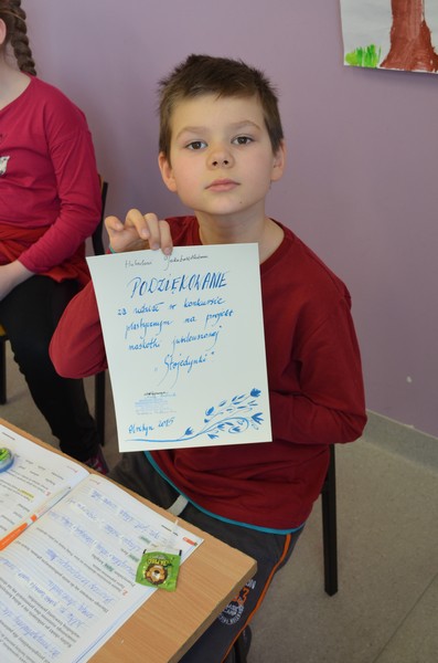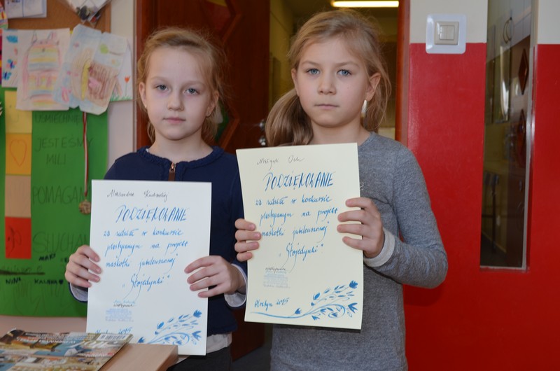 Konkurs plastyczny na projekt jubileuszowej  maskotki „ Stojedynki ” wygrał Igor Daniluk z  klasy III lawendowej. Serdecznie gratulujemy! Dziękujemy za udział Hubertowi  Szałkowskiemu, Dawidowi  Kurkowskiemu, Wiktorowi  Jekielowi, Hubertowi  Jakubowskiemu, Poli Blandzie, Zosi Tomaszek, Oli Remiszewskiej, Maćkowi Deresiwiczowi,  Adamowi Freń, Magdzie Siembidzie, Lenie Jarosławskiej,  Dominice Jasieckiej, Ninie Bugaj, Michałowi  Witalskiemu, Oli Kucharskiej, Alicji Michnik, Małgosi Och, Kamilowi Grabowskiemu i Oli Witalskiej.