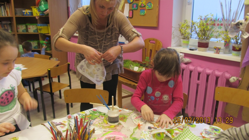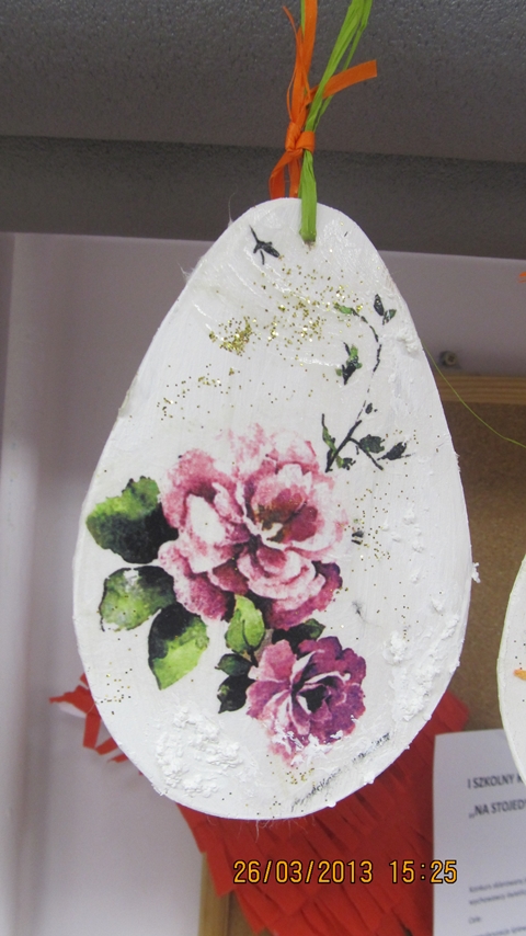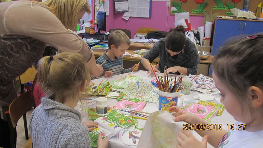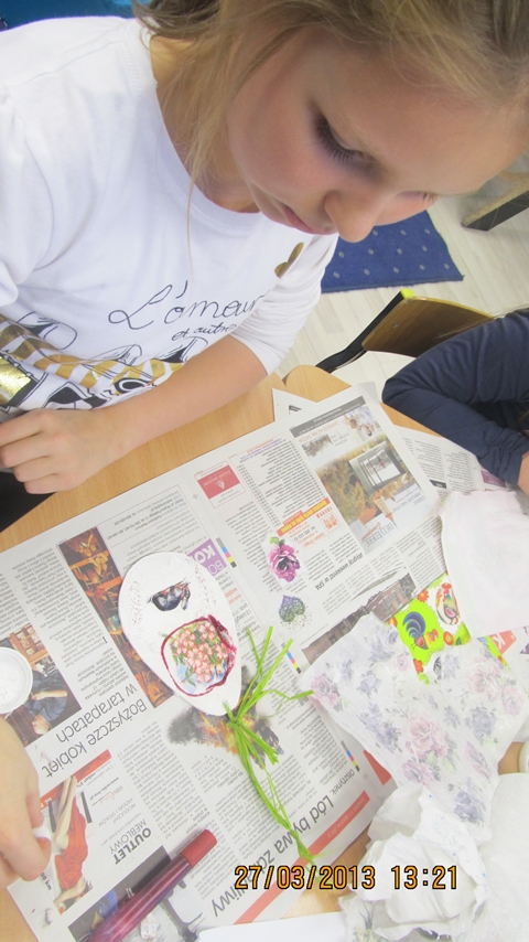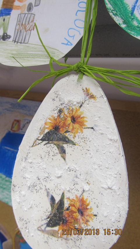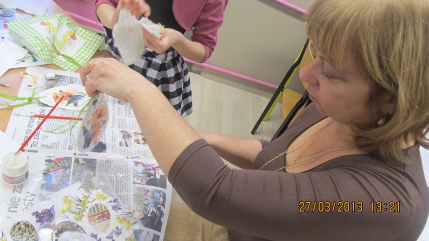 Serdecznie dziękujemy Pani Ewie Witalskiej za zakup materiałów i pomoc podczas ozdabiania jajek metodą decoupage.