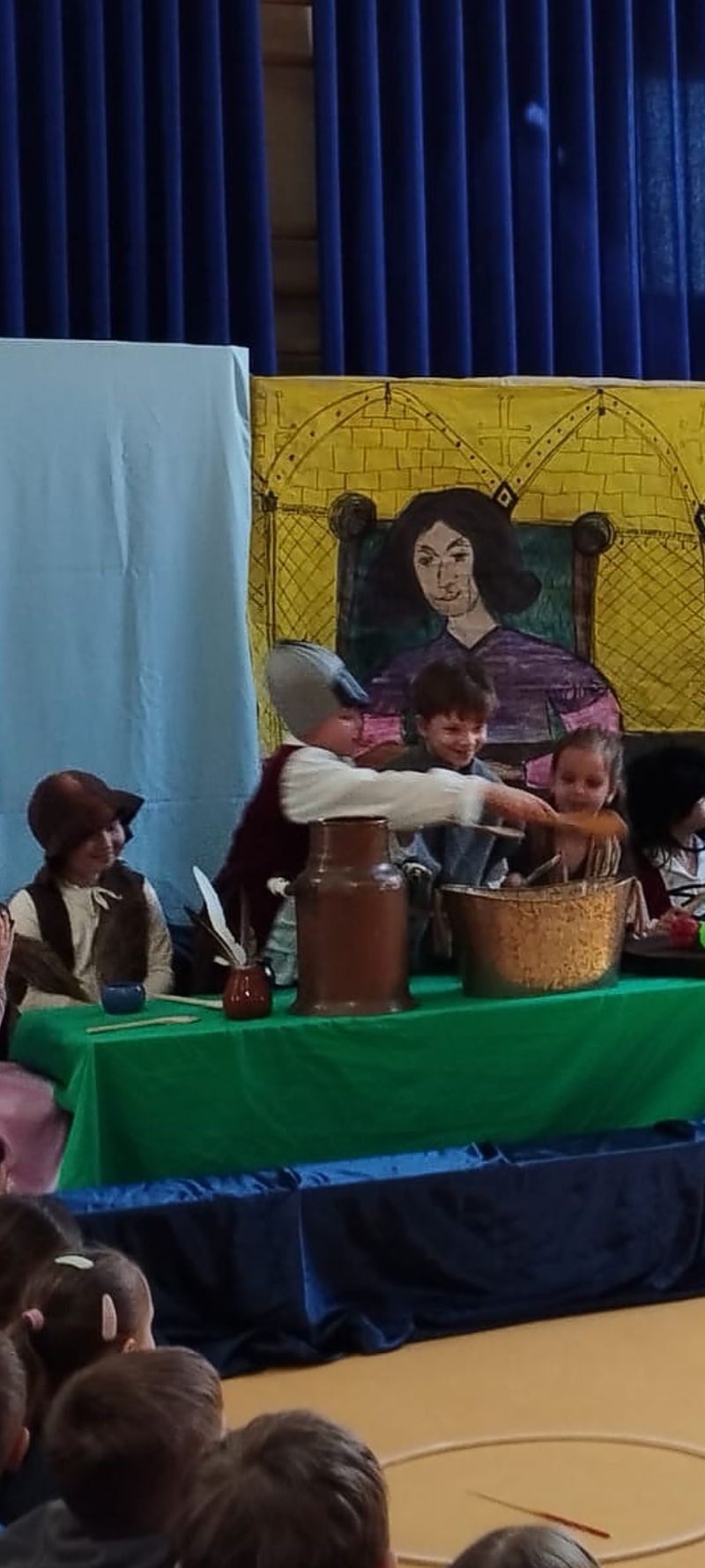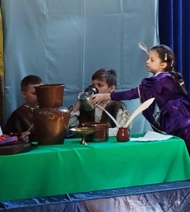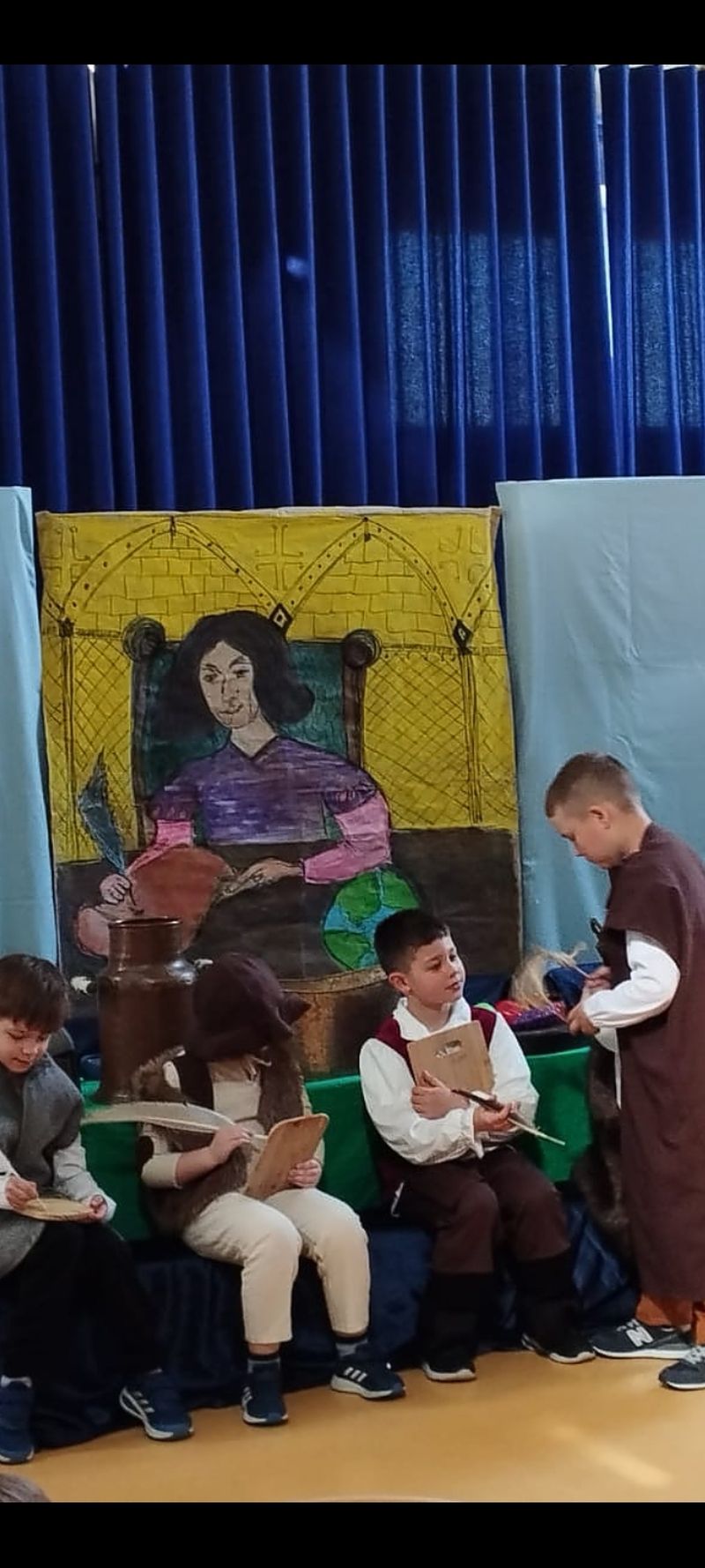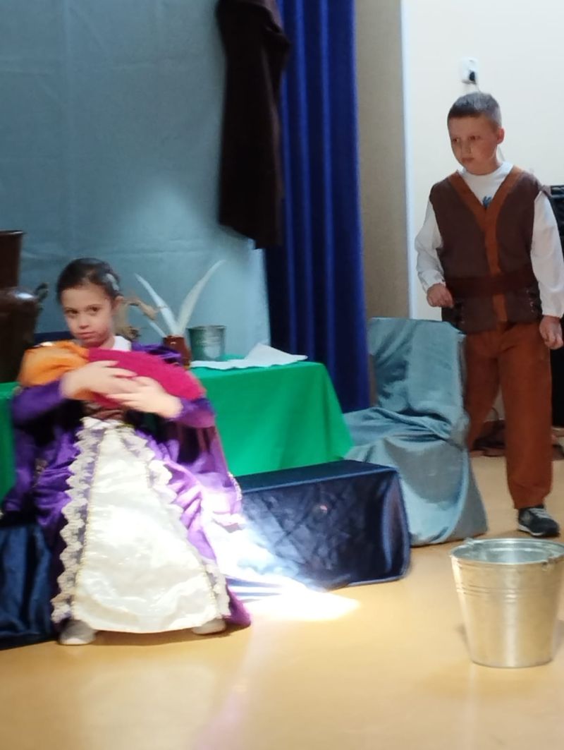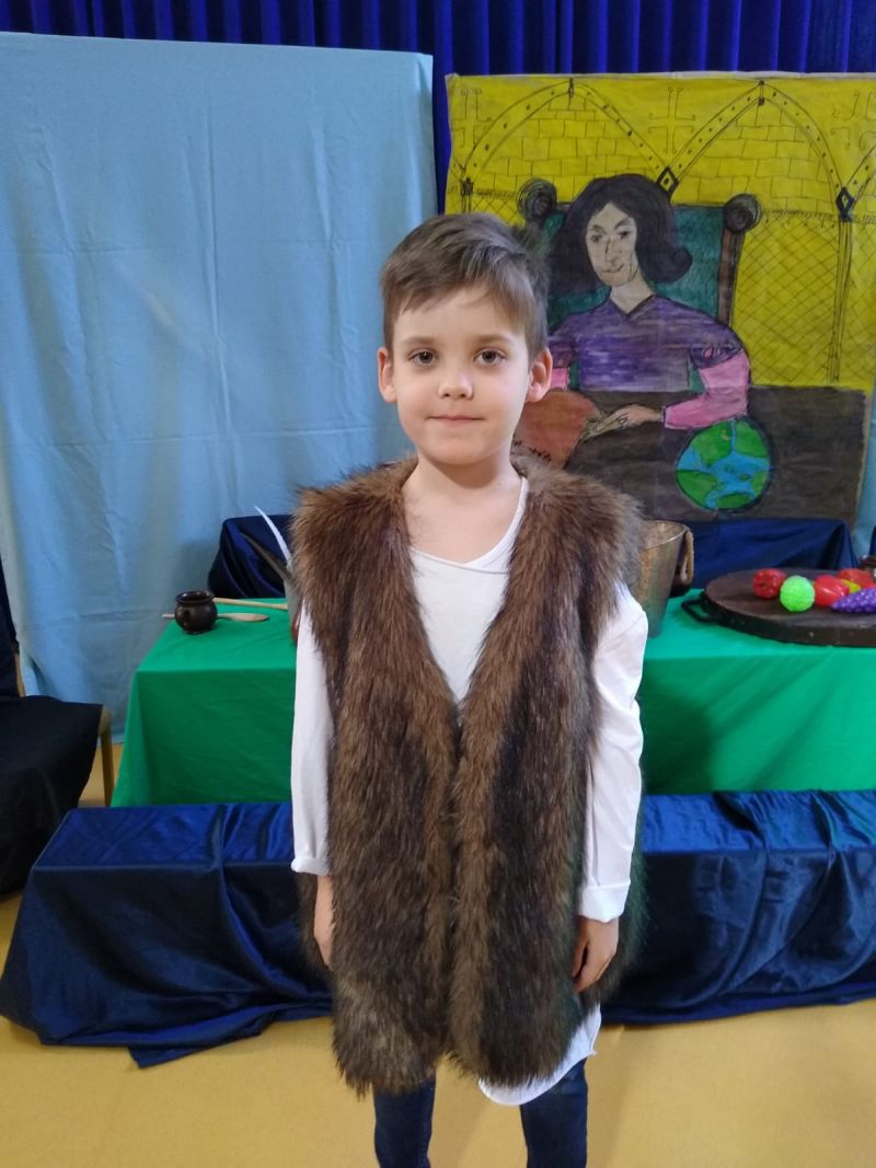 Klasa 1 szmaragdowa pokazała uczniom klas 0- 3 przedstawienie pt. „O chłopcu, który sięgnął do gwiazd”. Spektakl przybliżył młodym widzom czasy, w których żył Mikołaj Kopernik. W drugiej części spotkania odbył się konkurs wiedzy na temat życia i działalności wielkiego astronoma.