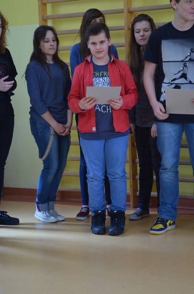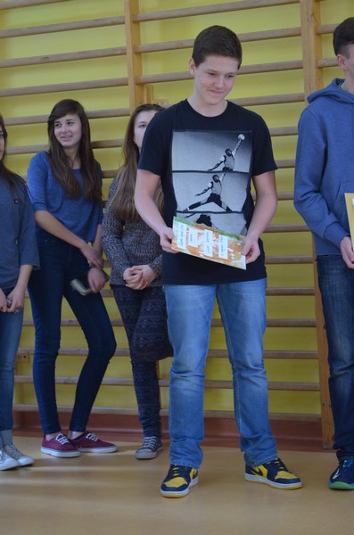 W piątek 6 marca 2015r. nagrodziliśmy laureatów szkolnej pokojowej nagrody Nobla. Wręczenie nagród jest podsumowaniem projektu Comenius, który miał na celu pokazanie naszym uczniom, że każdy z nas może zostać bohaterem poprzez „zwykłe” uczynki i rozwijanie w sobie chęci niesienia pomocy innym. W głosowaniu przeprowadzonym przez Samorząd Uczniowski uczniowie klasy VI oraz klas I-III gimnazjum wybrali laureatów szkolnej pokojowej nagrody Nobla w następujących kategoriach: