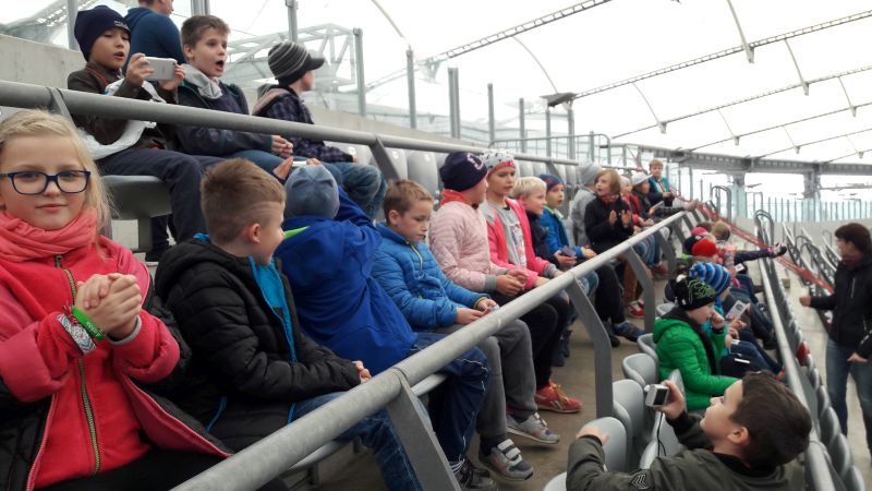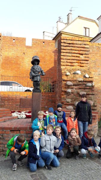 19 października byliśmy w Warszawie. Najpierw jechaliśmy 3 godziny. Kiedy dojechaliśmy, wysiedliśmy przed Stadionem Narodowym. Po obejrzeniu obiektu, poszliśmy kupować pamiątki związane z Warszawą albo z piłką nożną. Później mieliśmy lekcję muzealną w Muzeum Narodowym. Potem widzieliśmy zmianę warty przy Grobie Nieznanego Żołnierza. Na zakończenie wycieczki zwiedziliśmy Starówkę. W późnych godzinach wieczornych wróciliśmy do Olsztyna.