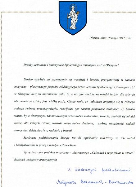 Z ogromną przyjemnością informujemy o wielkim, muzyczno – plastycznym sukcesie naszych gimnazjalistów. Wernisaż i koncert udały się na „101”. Zaproszeni goście długo wyrażali swój podziw i uznanie dla młodych talentów.
