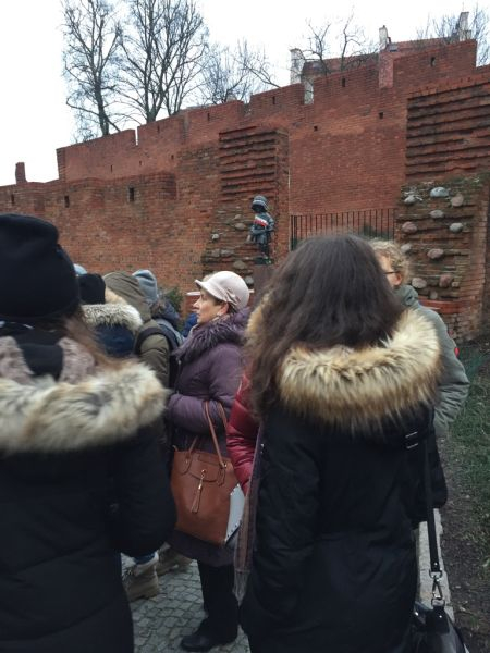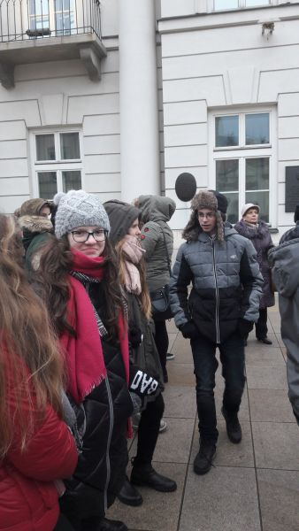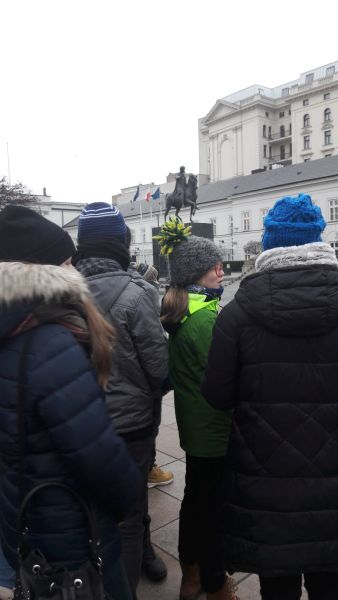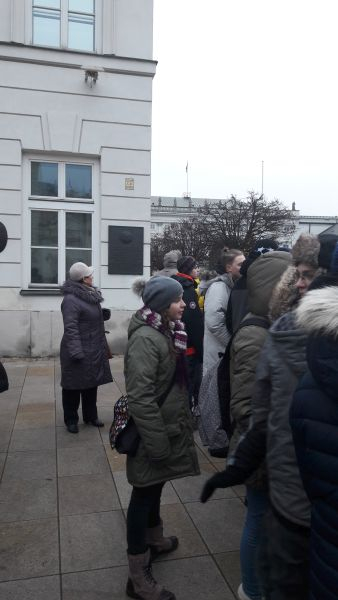 W planach mieliśmy zwiedzanie Sejmu, ale ze względu na bieżące wydarzenia polityczne, zmuszeni byliśmy odwołać swoją wizytę. Postanowiliśmy zwiedzić Cmentarz Wojskowy na Powązkach (nazywany zwyczajowo „Powązkami Wojskowymi”) – warszawski cmentarz komunalny założony w 1912. Spoczęli na nim uczestnicy powstań: listopadowego, styczniowego, wielkopolskiego, powstań śląskich, bohaterowie wojny polsko-bolszewickiej i walk o granice RP, ofiary przewrotu majowego, a także żołnierze polegli we wrześniu 1939. W czasie okupacji na Powązkach chowano, zwykle pod przybranymi nazwiskami, członków polskiego ruchu oporu m.in. Jana Bytnara (jako Jana Domańskiego). To właśnie groby: Jana Bytnara „Rudego”, odbitego 26 marca w akcji pod Arsenałem, Aleksego Dawidowskiego „Alka” i Tadeusza Zawadzkiego „Zośki” odwiedziliśmy w pierwszej kolejności, zapaleniem znicza oddając hołd bohaterom „Kamieni na szaniec”. Znaleźliśmy również miejsce spoczynku Aleksandra Kamińskiego „Kamyka” – twórcy poznawanej w gimnazjum powieści reportażowej o przyjaciołach walczących z okupantem w czasie II wojny światowej.