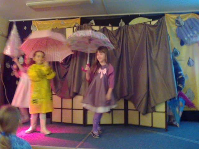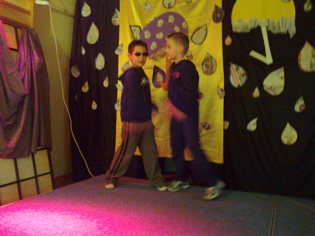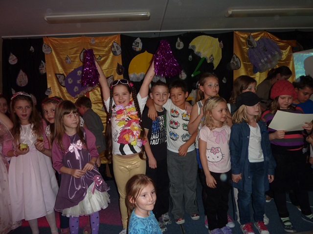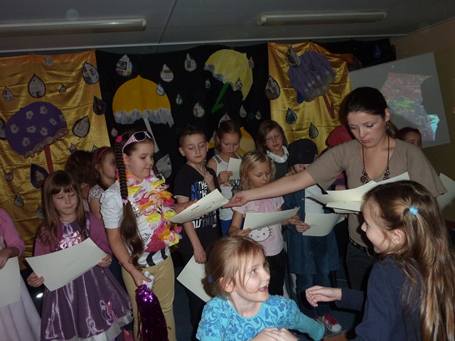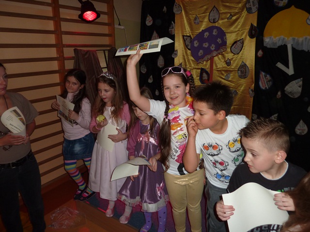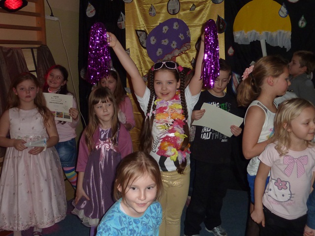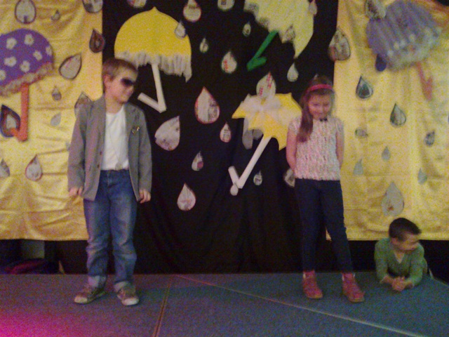 Łatwiej słuchać muzyki  z płyty lub oglądać gotowe teledyski, niż z  wielką odwagą i odrobiną humoru wcielić się w rolę piosenkarza czy gwiazdy filmowej. U nas prym wiodą dzieci chętne do tego, by zabłysnąć na scenie.  Widzowie mogli też obejrzeć prace plastyczne o tematyce jesiennej wykonane pod kierunkiem Pani Marty Wasilewskiej- Frągnowskiej, Magdaleny Gontar i Ewy Biegańskiej.