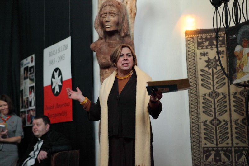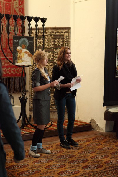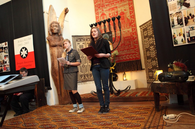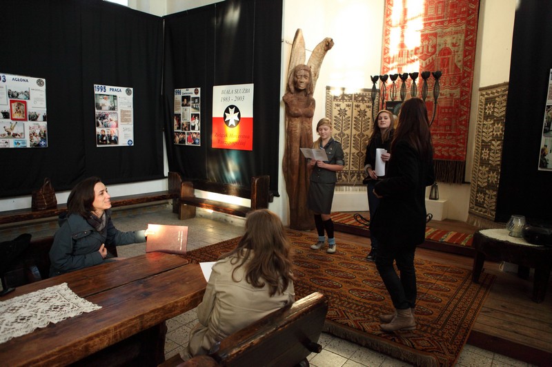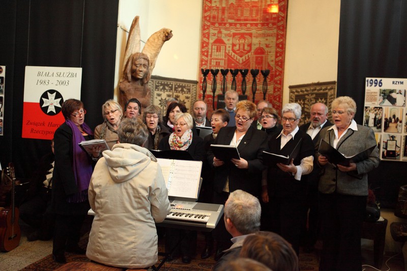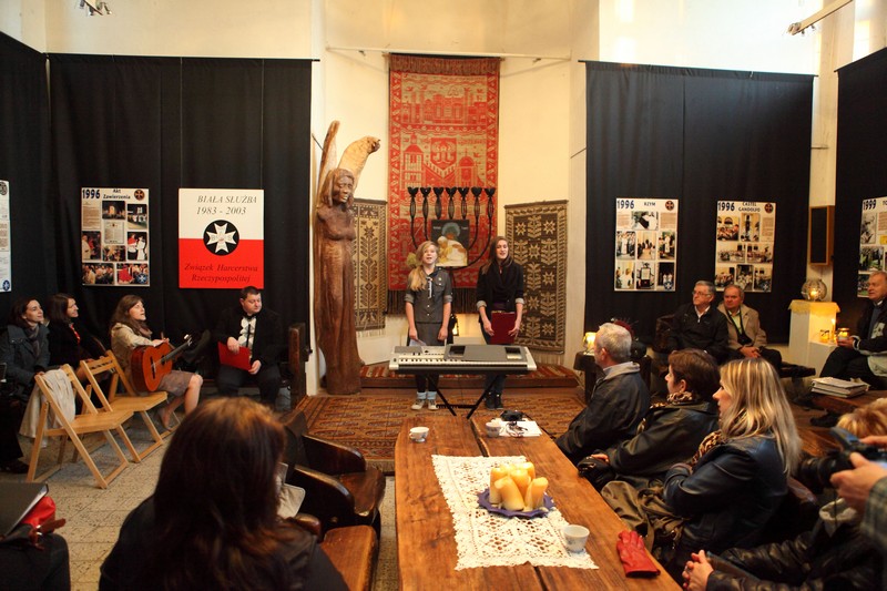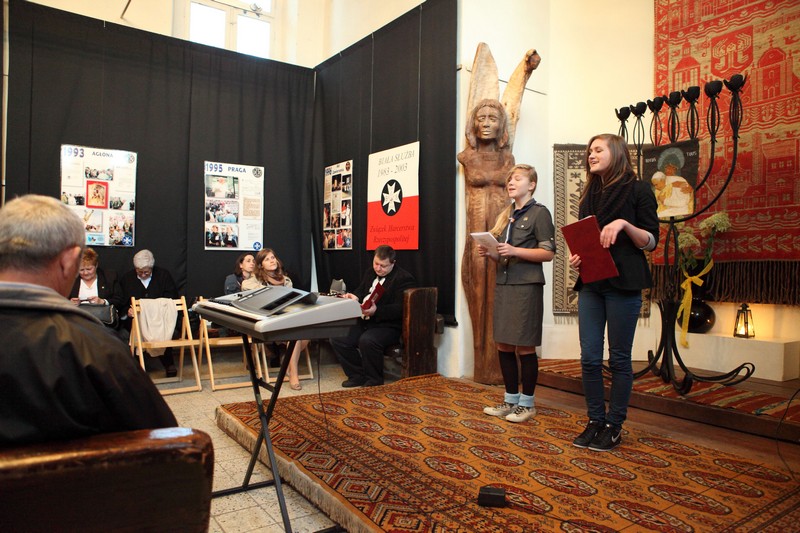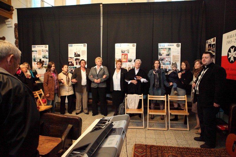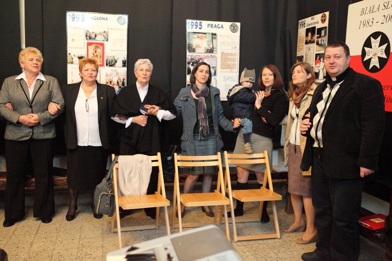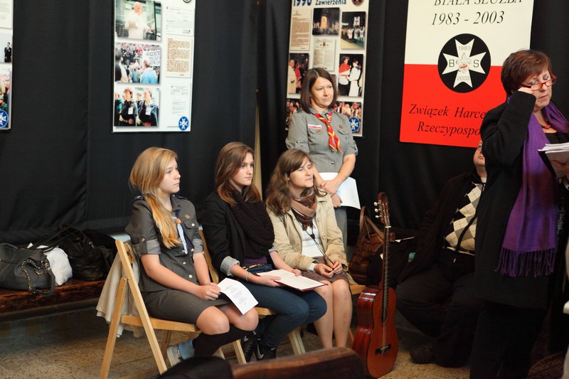 13 października 2012 roku o godzinie 17.00 w Galerii Sztuki Synagoga w Barczewie odbyło się uroczyste otwarcie wystawy poświęconej historii Białej Służby – harcerskiej służbie porządkowej, informacyjnej i medycznej organizowanej podczas podróży apostolskich Jana Pawła II. W ten sposób uczczono XII–ty już Dzień Papieski obchodzony pod hasłem ,,Jan Paweł II – Papież Rodziny”. Spotkanie otworzyła p. Krystyna Szter. Następnie zebrani wysłuchali kilku utworów w wykonaniu związanego z synagogą chóru „Moderato II” pod kierunkiem Danuty Nowakowskiej. Kilka słów o idei „Białej Służby” i jej realizacji od 1983 r. przez niezależne środowiska harcerskie przekazała hm. Małgorzata Siergiej – przewodnicząca Warmińsko – Mazurskiego Obwodu ZHR. Uroczystość uświetnił występ młodzieży harcerskiej ze Związku Harcerstwa Rzeczypospolitej i współpracującego z ZHR-em Społecznego Gimnazjum 101 w Olsztynie. Pieśni papieskie przygotowały p. Monika Kamińska i p. Lena Choromańska – nauczycielki „Stojedynki”. Ks. Piotr Wiśniewski – inicjator wystawy – zakończył spotkanie krótkim wykładem tłumaczącym przesłanie tegorocznego Dnia Papieskiego, a wszyscy zebrani wraz z młodzieżą gimnazjalną i harcerzami wspólnie zaśpiewali ulubioną pieśń Karola Wojtyły – „Barkę”. Był czas na rozmowy, ciepłą herbatkę i pyszne ciasto. Jednym słowem: uczta dla duszy i ciałaJ