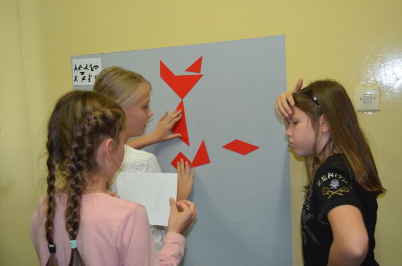 – układanie tangramu na czas,