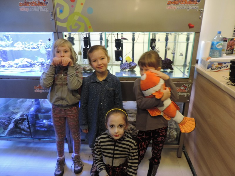 31 października odwiedziliśmy sklep zoologiczny „Zwierzyniec”. Dowiedzieliśmy się, jak należy się opiekować zwierzętami domowymi. Widzieliśmy tchórzofretkę, myszki, papugi, no i oczywiście piękne rybki słodkowodne i żyjące w morzach i oceanach. Dziękujemy Państwu Danilukom za zaproszenie – klasa I koralowa.